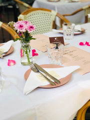 Under the shadows of the 35 year old ficus plants, the central piazza area of the village was transformed into a beautiful collage of pink and white. Tables made special with white tablecloths. Each table adorned with relaxed pearl laced jars of Mother’s Day pink and white chrysanthemum which made for a lovely juxtaposition of a relaxed yet celebratory feeling.
